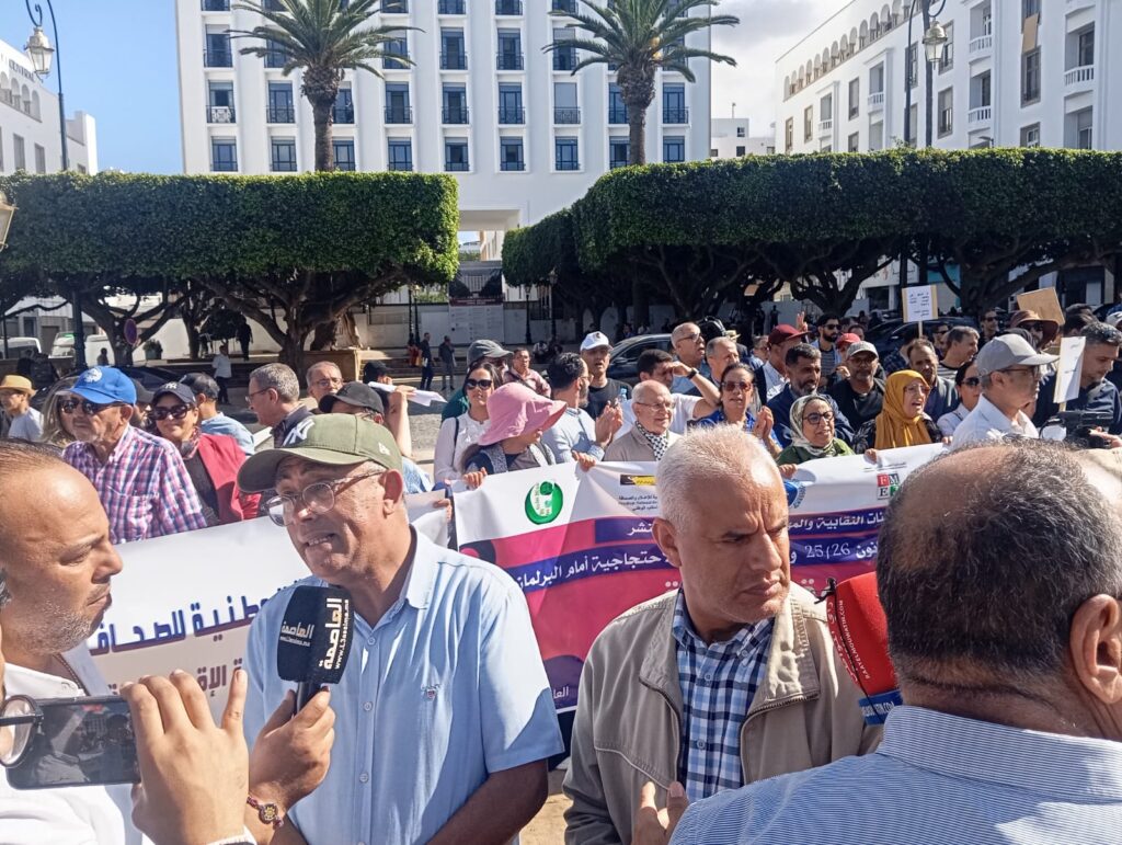 الجسم الصحفي يحتج أمام البرلمان للمطالبة بتنظيم ذاتي مستقل لمهنة الصحافة والنشر