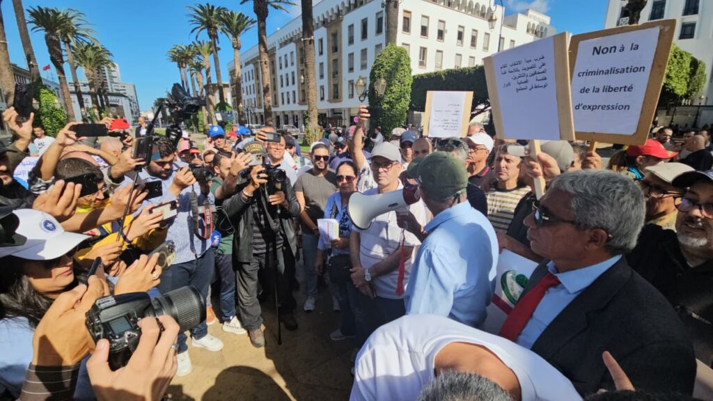 ● تحيي عاليا كل الصحافيات والصحفيين والناشرات والناشرين، وفي كل المنابر والمؤسسات الإعلامية، محلياً وإقليميا وجهويا على مشاركتهم الوازنة والواعية والمسؤولة في الوقفة الاحتجاجية المركزية أمام البرلمان. وتسجل باعتزاز، انخراط المنظمات الحقوقية والمدنية والإطارات الإعلامية، والمركزيتين النقابيتين الاتحاد المغربي للشغل والكونفدرالية الديمقراطية للشغل في هذه المحطة النضالية المشروعة، في إسناد هذه الوقفة؛