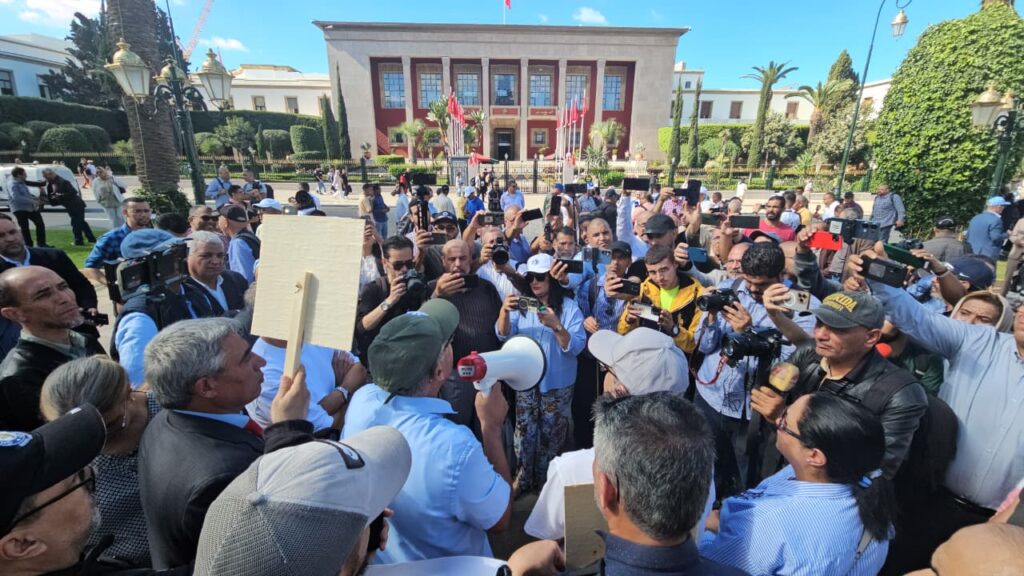 إن الهيئات النقابية والمهنية لقطاع الصحافة والنشر (النقابة الوطنية للصحافة المغربية، الفيدرالية المغربية لناشري الصحف، الجامعة الوطنية للصحافة والإعلام والاتصال (UMT) ، النقابة الوطنية للإعلام والصحافة (CDT) ، الكونفدرالية المغربية لناشري الصحف والإعلام الإلكتروني) وبعد وقوفها وتقييمها للوقفة الاحتجاجية المركزية التي نظمتها صباح اليوم الأربعاء 22 أكتوبر 2025 أمام البرلمان ضد إعداد الحكومة لمشروع قانون تراجعي يتعلق بمؤسسة التنظيم الذاتي خارج الحوار الاجتماعي المسؤول والمنتج مع المهنيين، ومحاولة تمريره في مجلس المستشارين ضدا على إرادة المهنيين والرأي الاستشاري للهيئتين الدستوريتين، المجلس الوطني لحقوق الإنسان والمجلس الاقتصادي والاجتماعي والبيئي، وأحكام الدستور، ومدونة الصحافة والنشر، والعهود و المواثيق الدولية، فإنها: